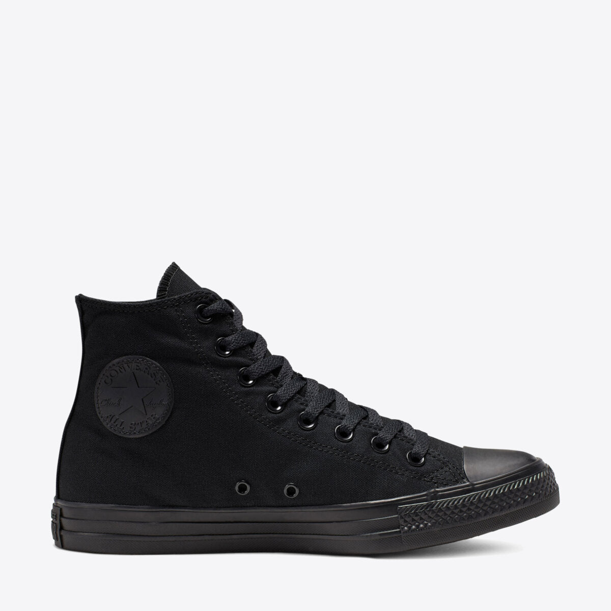 The Converse Chuck Taylor All Star Hi in Black Mono. Simply combining the iconic high top silhouette with classic colours. All resting on top of a quality vulcanized rubber sole.